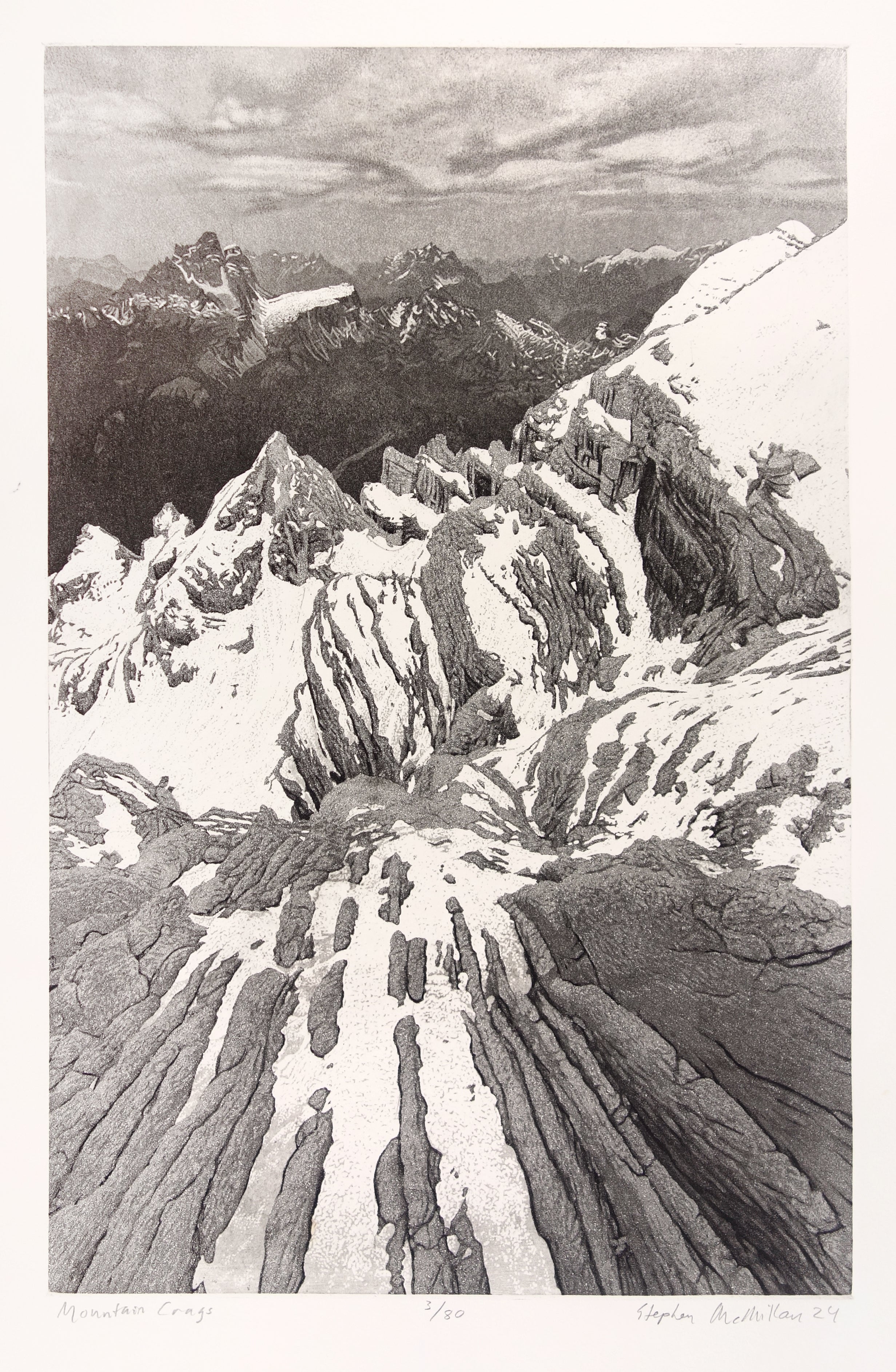 Stephen McMillan is a Pacific Northwest artist who focuses on Northwest and Californian scenes, powerful natural colors, and dramatic viewpoints. McMillan works most frequently in aquatint and etchings, depicting landscapes that he has personally photographed and drawn. His work aims to capture renewal and invigoration generated by being in and moving through the natural environment. He received his BFA from the University of California, Santa Cruz in 1975, studied at Hornsey College of Art in London, and taught at Kala Art Institute in Berkeley. His work has been exhibited throughout the United States and is held by many public collections, including the Brooklyn Museum and Portland Art Museum.